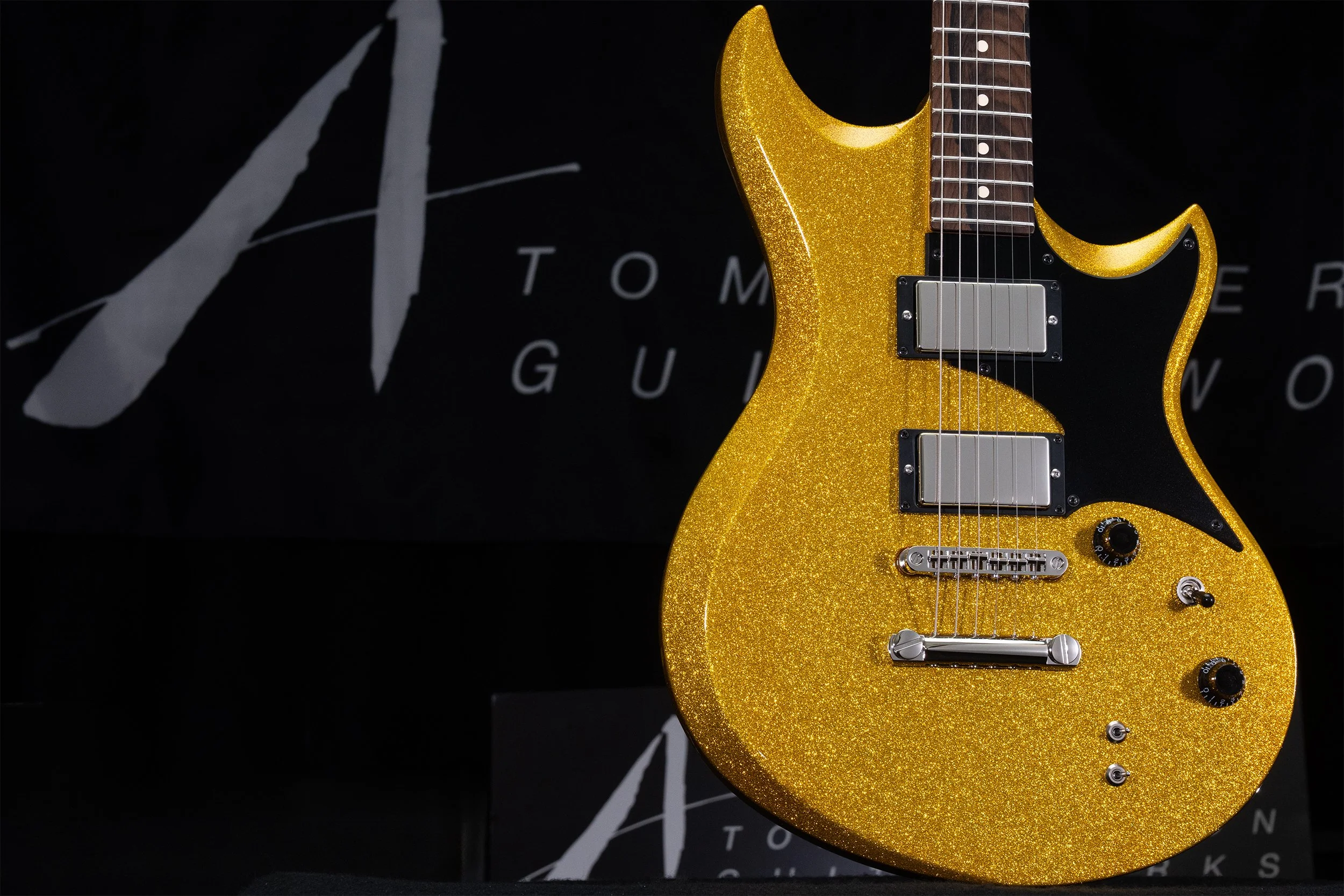 Standing out from the crowd, this Big Sparkle Gold Wolfhound Mutt would simply not lie down. Radiating from our NAMM booth all three days of the show, making massively bold visual and sonic statements for all to see and hear.