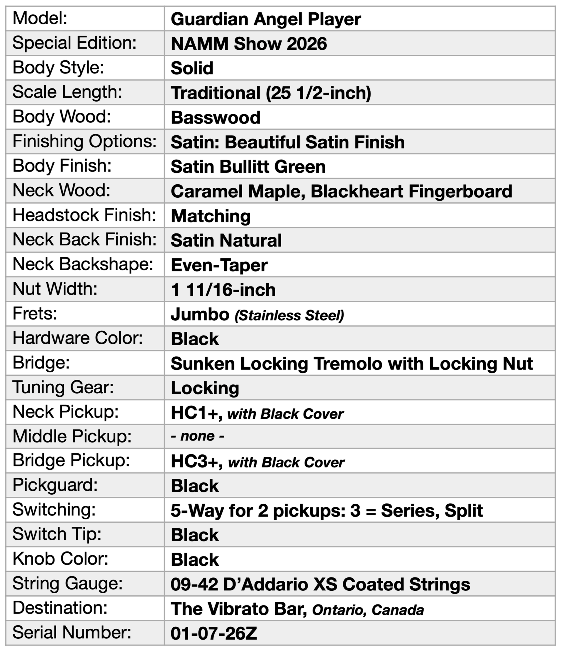 GUITAR SPECIFICATIONS: