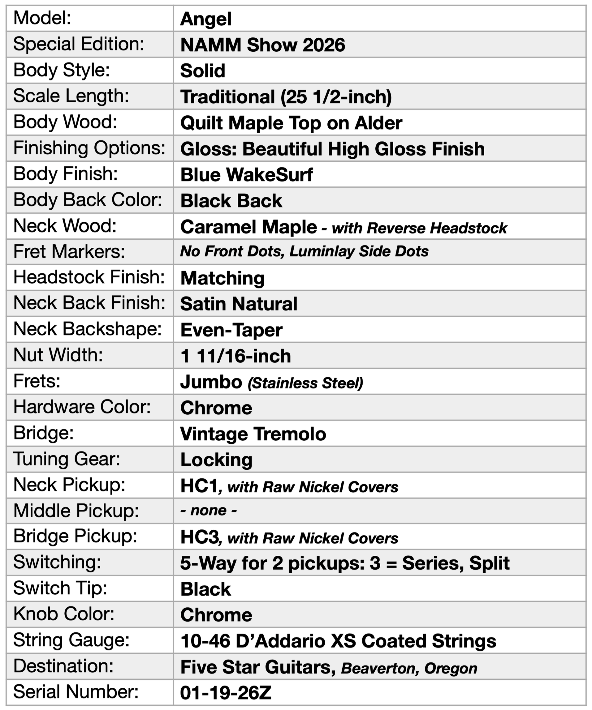 And now we know of the wonderousness of blue guitars and why they are so loved. Thank you, Siri. Thank you, Gemini. And thank you too, gorgeous Blue WakeSurf Angel, appearing out of the blue, for you at Five Star Guitars in Beaverton, Oregon.