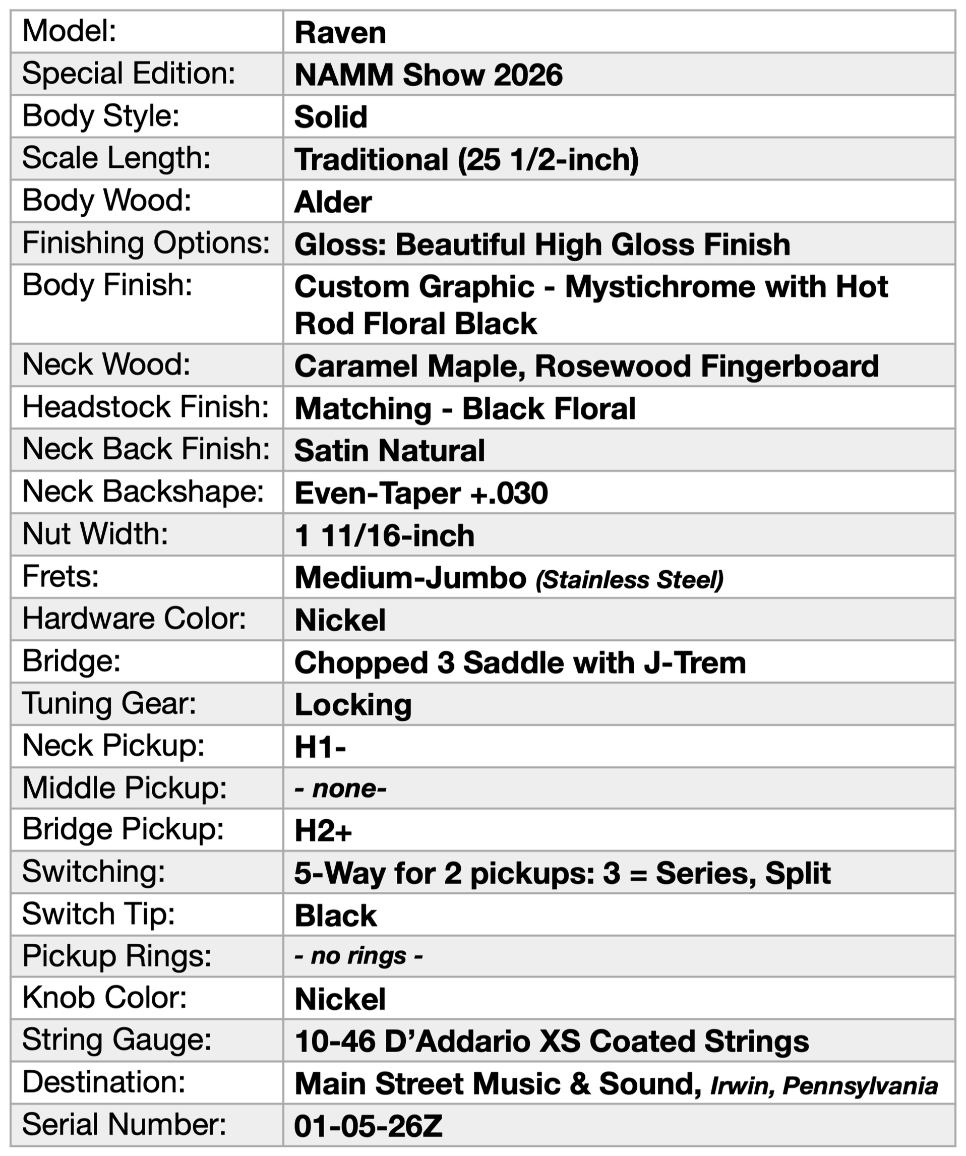 Oh yes, a one-of-a-kind, Raven, never before seen. Headed to Main Street Music in Irwin, Pennsylvania.