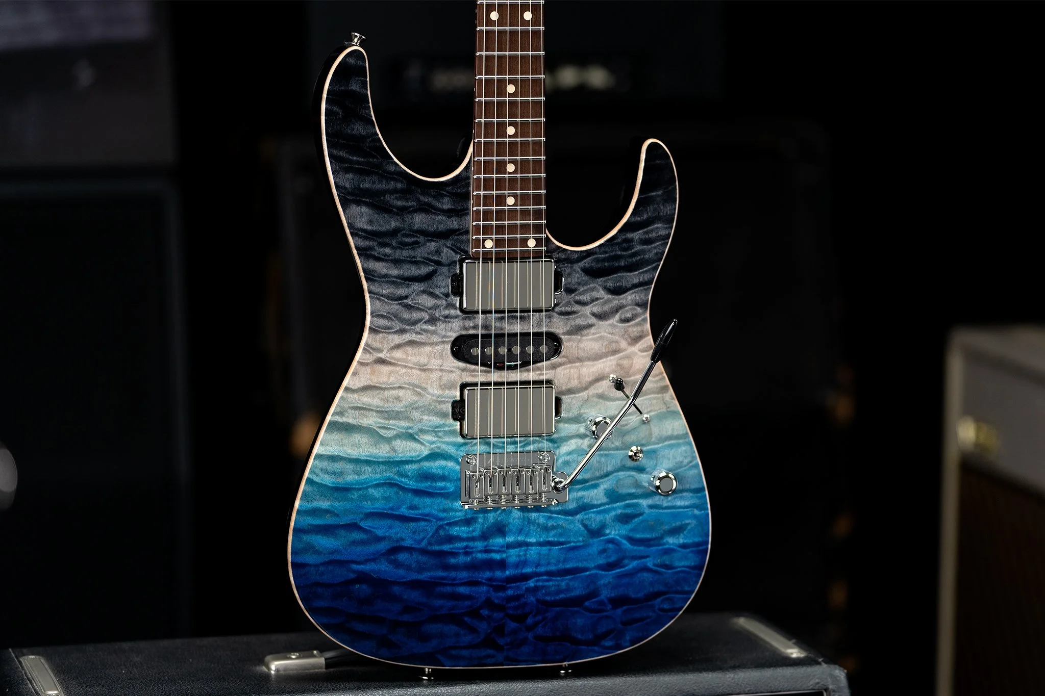 The optional array of its chosen Hum/Single/Hum pickup layout delivers a plethora of sonic selections at your beck and call—from crushing full humbucker tones to surprisingly excellent single coil renderings. The utmost in flexible versatility, all ferried from a traditional and intuitive 5-Way switching system—with a few extra options to allow you to access so much more, when desired.