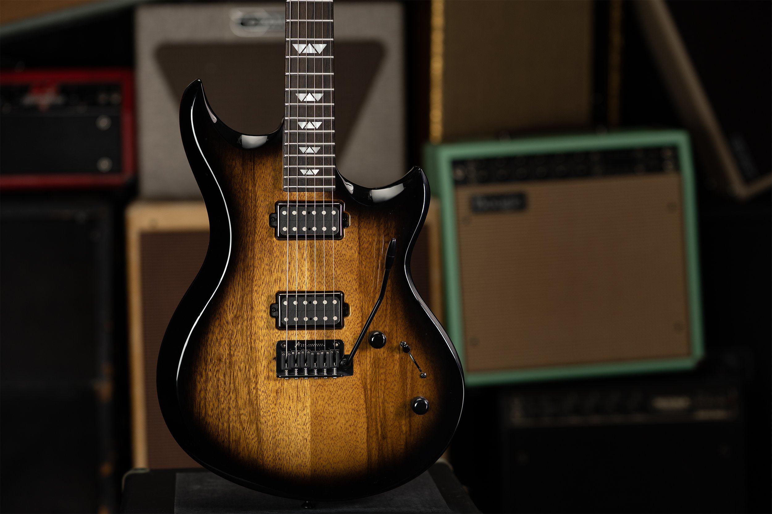 In contrast to everything else, our original Wolfhound is a light, nimble, dual-pickup, short-scale guitar with a top-mounted bridge that is fast and fun to fling around — due largely to its smaller, 20% thinner, sculpted body. Because of this thinner form factor, you have a leaner but vital selection of Humbuckers, Soapbars, or Mini-Hum pickups from which to choose, all directed by a Big 3-Way Toggle selector, and mini-toggles when applicable.