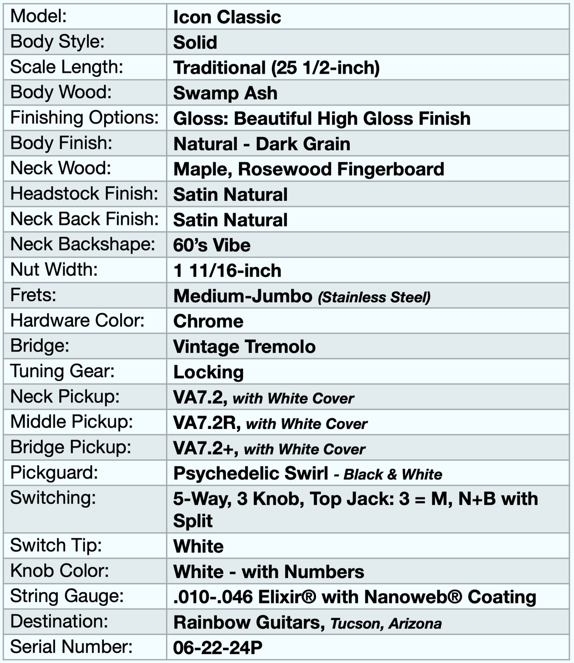 Yes, it is a Natural thing—an Icon Classic, Natural Dark Grain finish with a Psychedelic Swirl Pickguard.