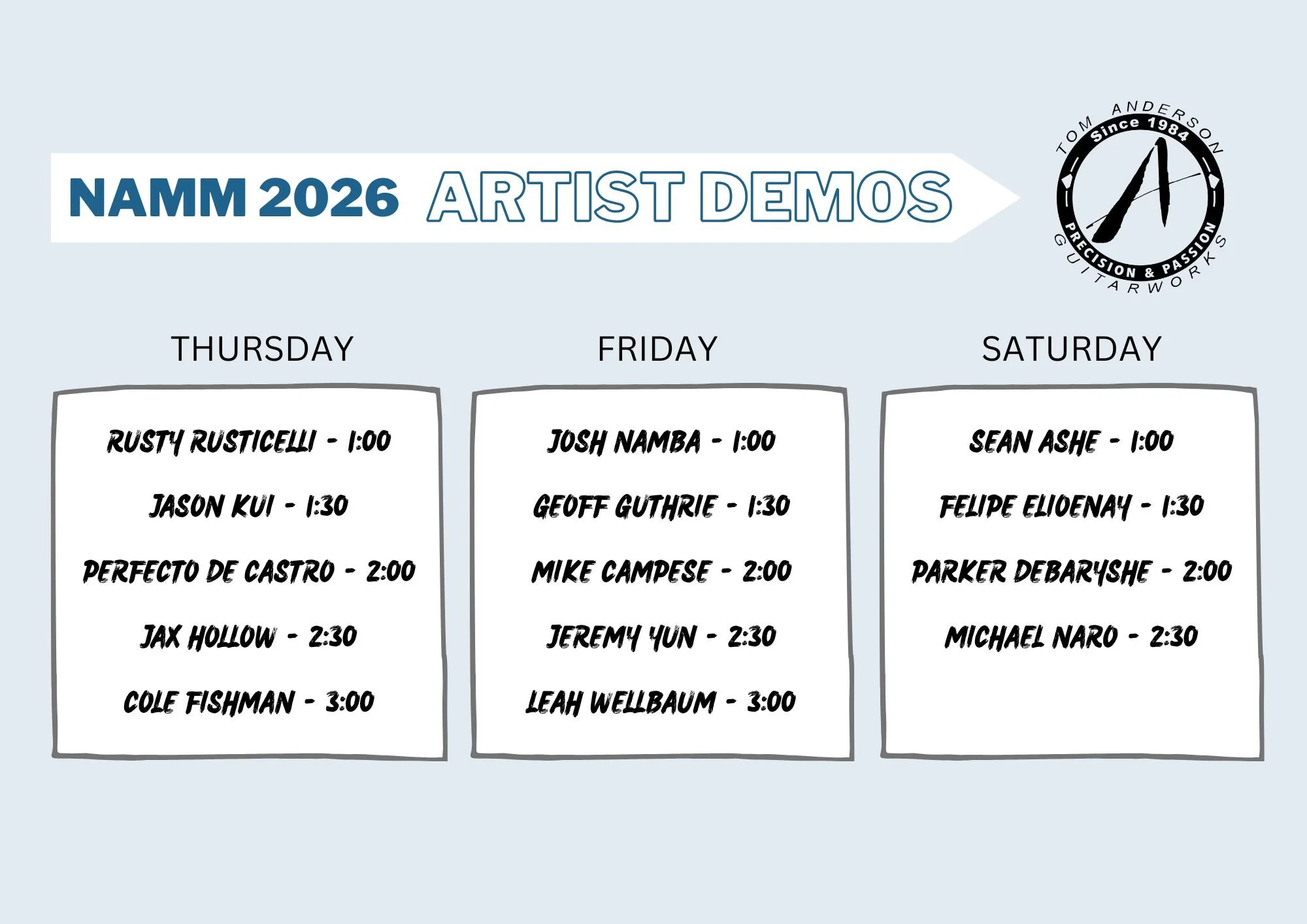 January 20, 2026 Artists at NAMM 2026 January 20, 2026/ Danny Henderson Come see some awesome Anderson Artists at the show! We’re at Booth 4810. Click for Show Map